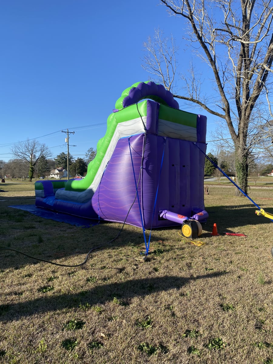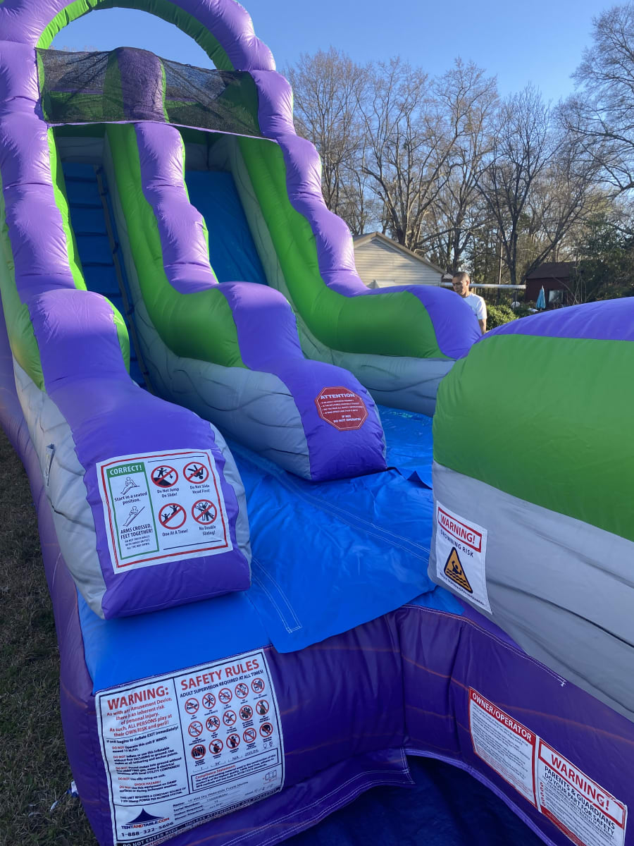 At Inflatable Rentals, we take pride in providing top-notch entertainment options for residents of Gray Court, Laurens, Fountain Inn, and Simpsonville. Our delivery service brings the excitement right to your doorstep, making it convenient and hassle-free for you to enjoy the 15’ Purple Lagoon Slide at your preferred location.