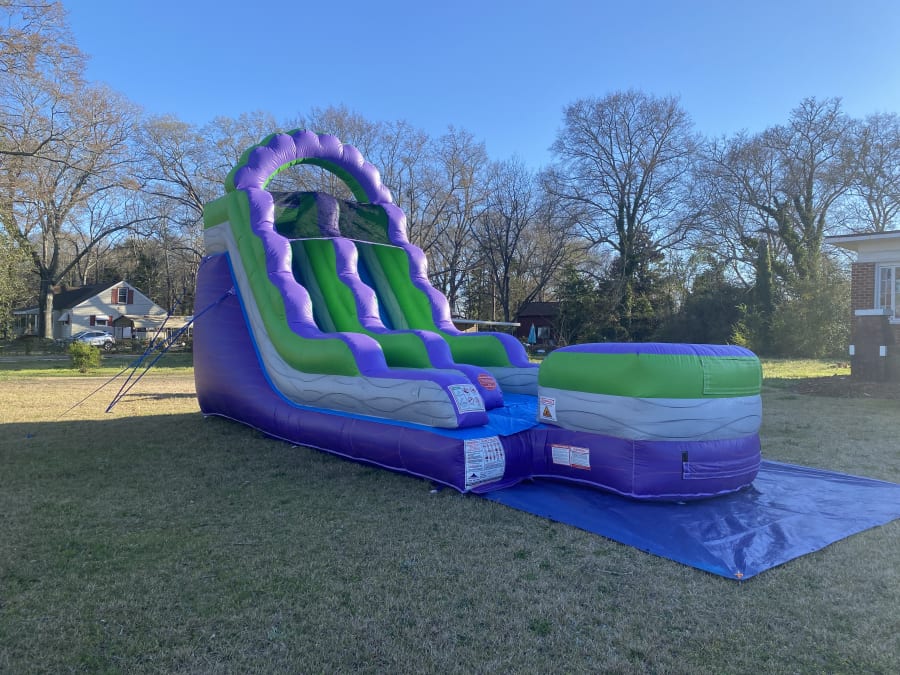 Planning a birthday party or a neighborhood gathering? Add a splash of excitement and create lasting memories with our 15’ Purple Lagoon Slide. With its vibrant purple color and thrilling slide experience, it's sure to be the highlight of any event!