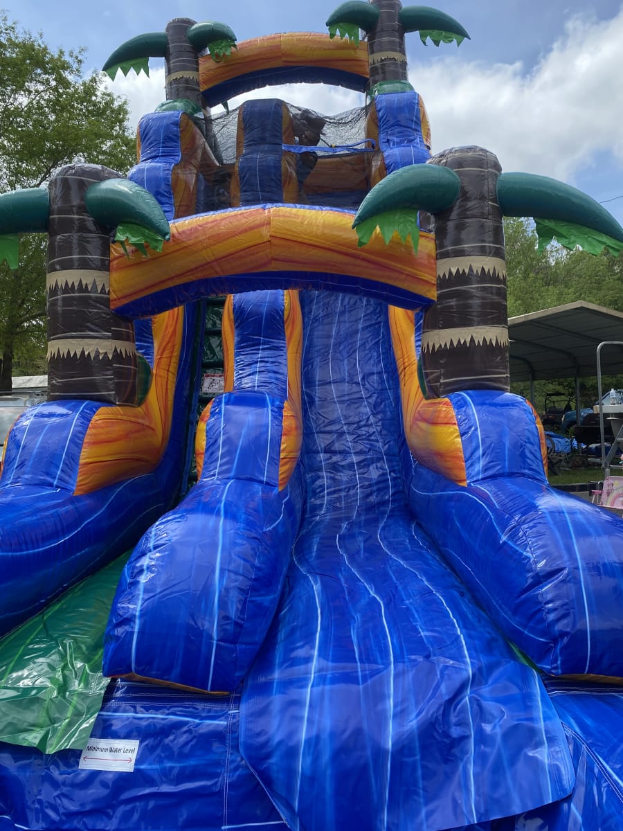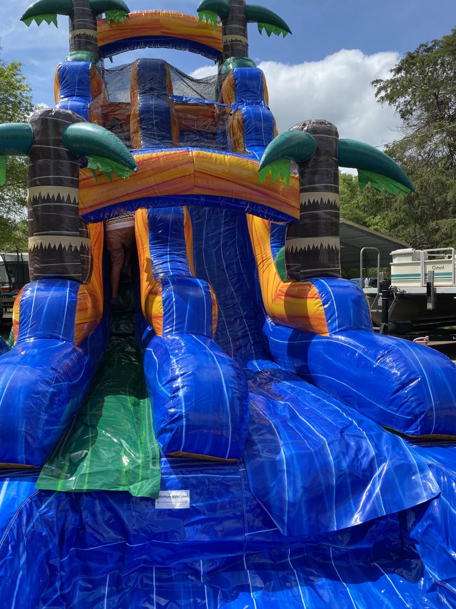 🌴 Looking to make a splash at your next event? Look no further than our incredible 19 FT Tropical Waterslide! This massive waterslide stands 19 feet tall, stretches 30 feet long, and spans a width of 9 feet. It's the perfect addition to any outdoor gathering or celebration.