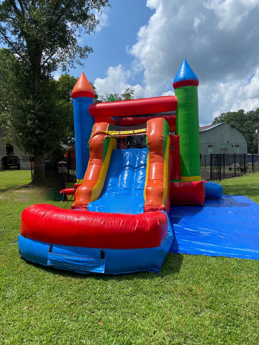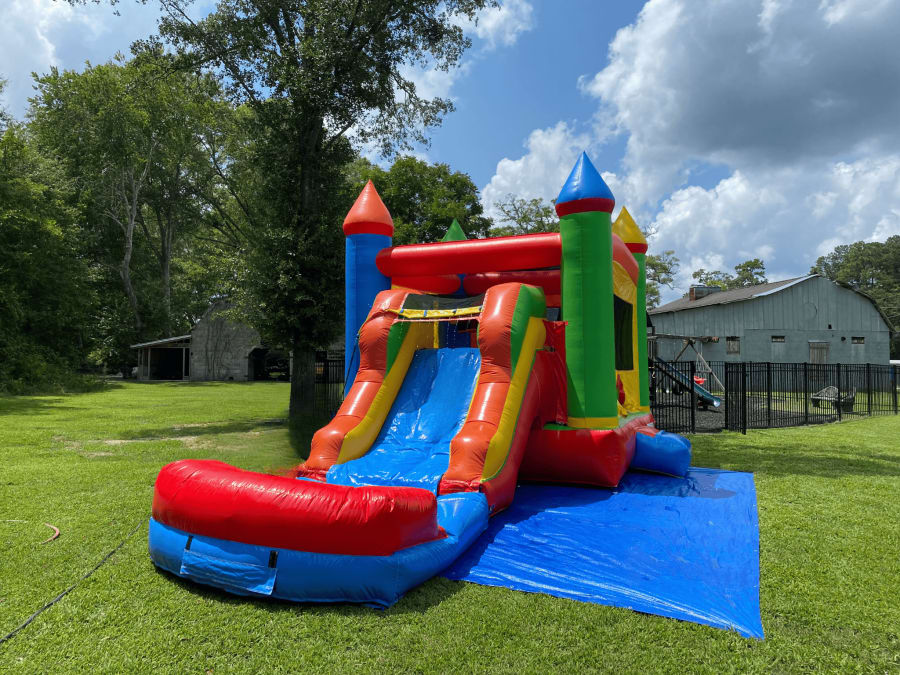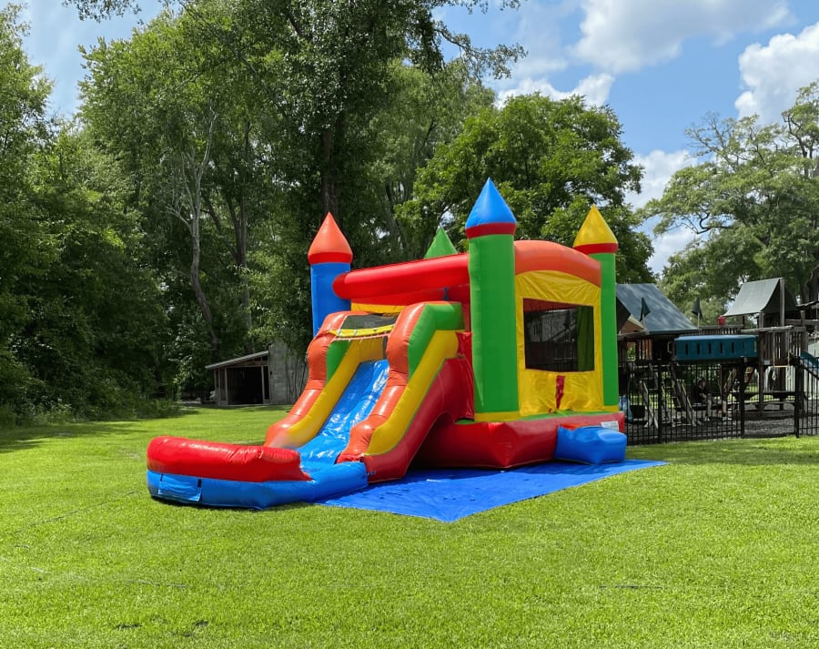 Looking for the ultimate in bounce house and waterslide fun? Look no further than our exciting Party Deluxe Combo! This inflatable attraction is perfect for any event or party, providing hours of entertainment and enjoyment for all the children!
